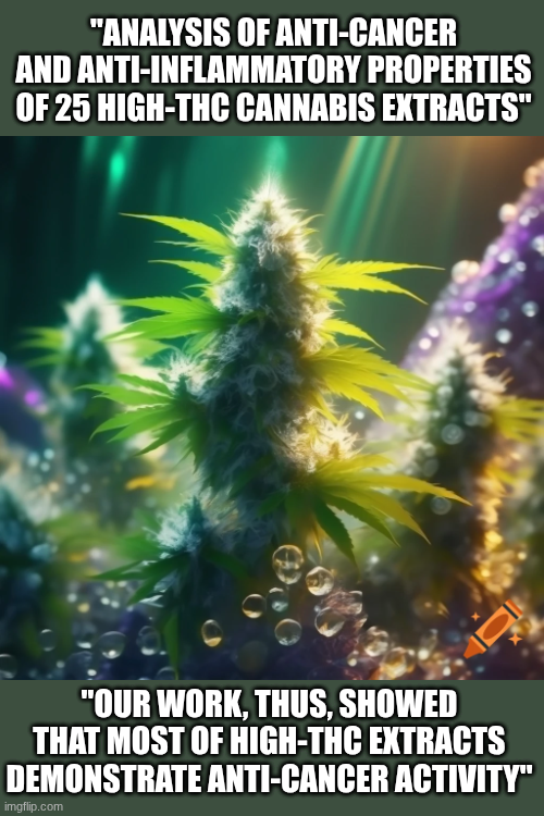 Our work, thus, showed that most of high-THC extracts demonstrate anti-cancer activity, while only certain selected extracts showed anti-inflammatory activity. Presence of certain terpenes, such as terpinene, eucalyptol, cymene, myrcene and camphor, appear to have modulating effects on the activity of cannabinoids.”