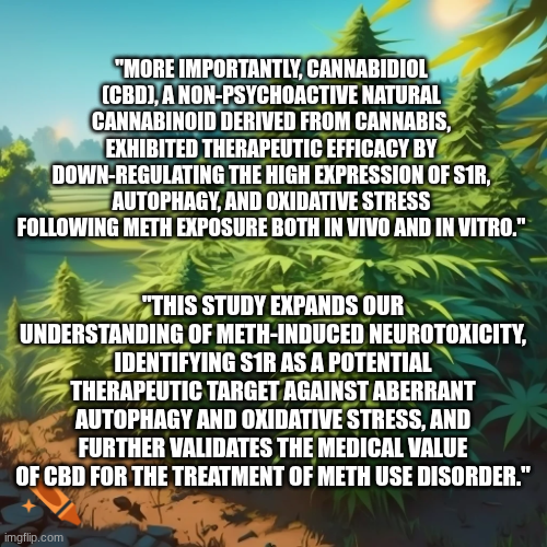 This study expands our understanding of METH-induced neurotoxicity, identifying S1R as a potential therapeutic target against aberrant autophagy and oxidative stress, and further validates the medical value of CBD for the treatment of METH use disorder.”