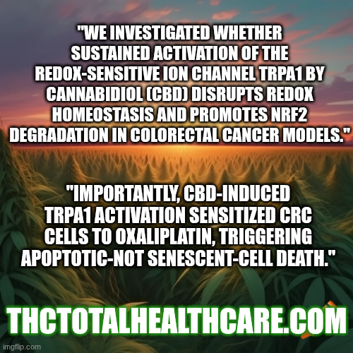 Importantly, CBD-induced TRPA1 activation sensitized CRC cells to oxaliplatin, triggering apoptotic-not senescent-cell death. These effects were dose-dependent and consistent across all tested cell lines.