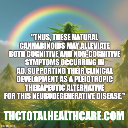 Conclusion: Our results reveal that the combination of THC and CBD modulates glutamatergic activity in the hippocampus at early stages of the AD process and that, likely related to this, reduces dopaminergic alterations in limbic areas at advanced stages. Thus, these natural cannabinoids may alleviate both cognitive and non-cognitive symptoms occurring in AD, supporting their clinical development as a pleiotropic therapeutic alternative for this neurodegenerative disease.”