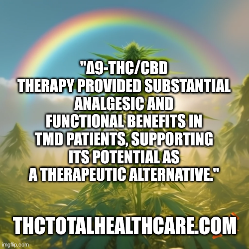 Conclusion: Δ9-THC/CBD therapy provided substantial analgesic and functional benefits in TMD patients, supporting its potential as a therapeutic alternative. Larger randomized studies are recommended to validate these findings and explore underlying mechanisms.”