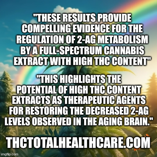 This highlights the potential of high THC content extracts as therapeutic agents for restoring the decreased 2-AG levels observed in the aging brain.”