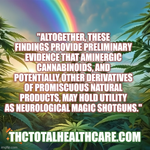 Altogether, these findings provide preliminary evidence that aminergic cannabinoids, and potentially other derivatives of promiscuous natural products, may hold utility as neurological magic shotguns.”