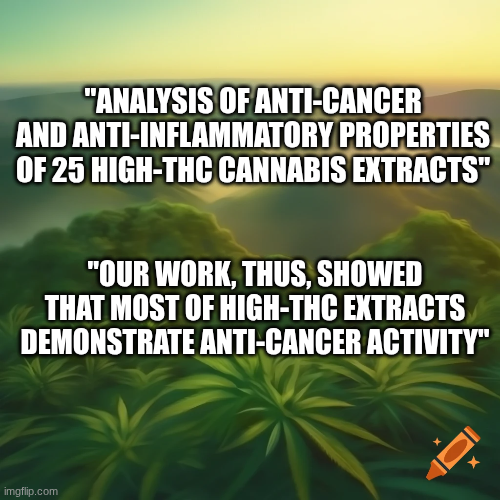Our work, thus, showed that most of high-THC extracts demonstrate anti-cancer activity, while only certain selected extracts showed anti-inflammatory activity. Presence of certain terpenes, such as terpinene, eucalyptol, cymene, myrcene and camphor, appear to have modulating effects on the activity of cannabinoids.”