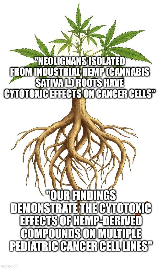 Results and discussion: Four neolignans were isolated from hemp roots and each differed in their molecular weight by 30 daltons. Two of the compounds were identified as dadahols A and B. We tested fractions of various purities containing neolignans against neuroblastoma cell lines CHLA15 and LAN5, hepatoblastoma cell line Hep3B, and Hodgkin’s lymphoma cell line L428. We found that semi-pure fractions containing dadahol A and/or dadahol B had the highest cytotoxic activity. We then tested pure dadahol A and dadahol B, and this revealed dadahol A exhibited the lowest IC50 values in all the cell lines.”