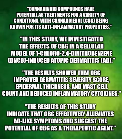In this study, we investigated the effects of CBG in a cellular model of 1-chloro-2,4-dinitrobenzene (DNCB)-induced atopic dermatitis (AD).