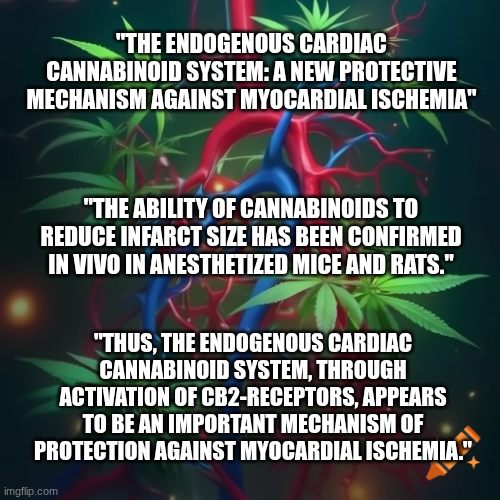 Thus, the endogenous cardiac cannabinoid system, through activation of CB2-receptors, appears to be an important mechanism of protection against myocardial ischemia.”